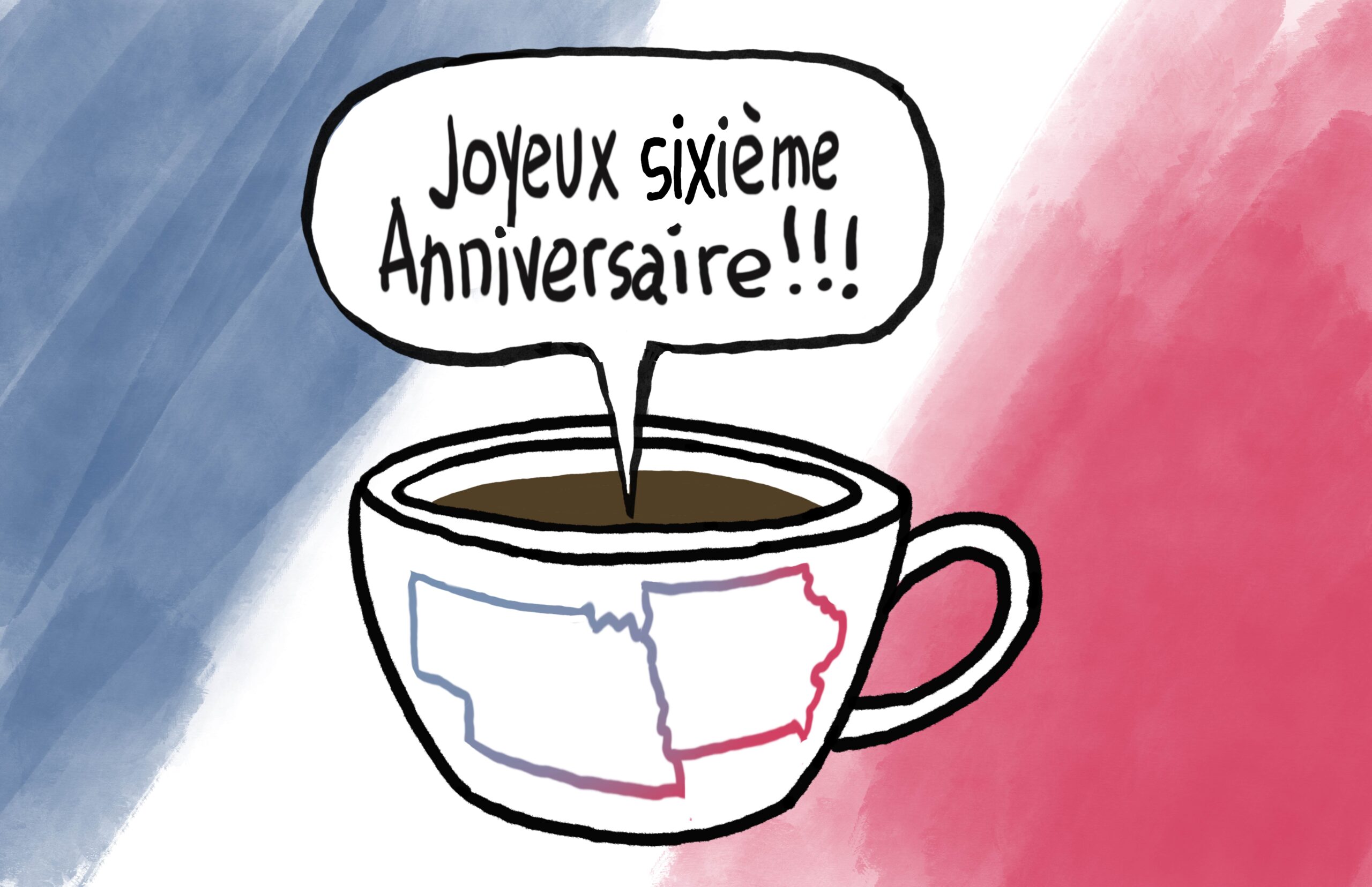 Please join us in celebrating six years of Café et Conversation! We will meet in Ashland, NE (about halfway between Lincoln and Omaha) for a progressive evening of drinks, French conversation and food. Come for all or part of the event. See below for the schedule:   3:15pm-4pm Drinks at Flutterby Finds (111 North 14th...